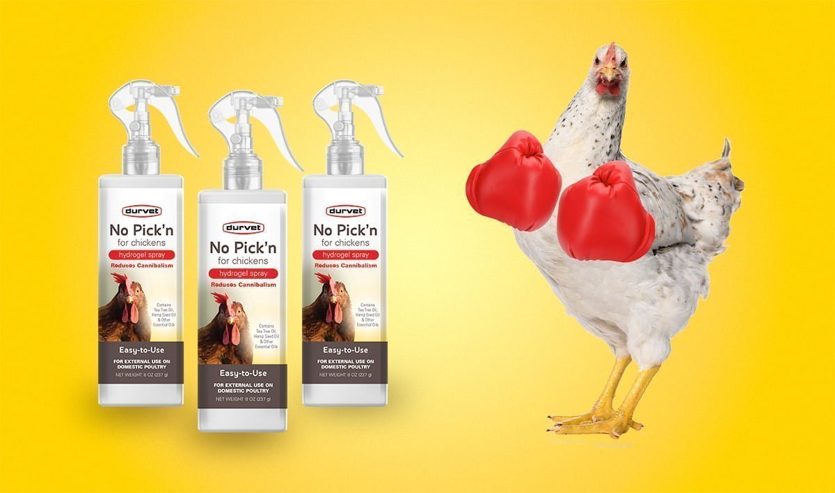NEW! Durvet's No Pick'n for Chickens reduces cannibalism in your flock. With this spray, you can protect your feathered friends from aggressive flock members while they heal from wounds.