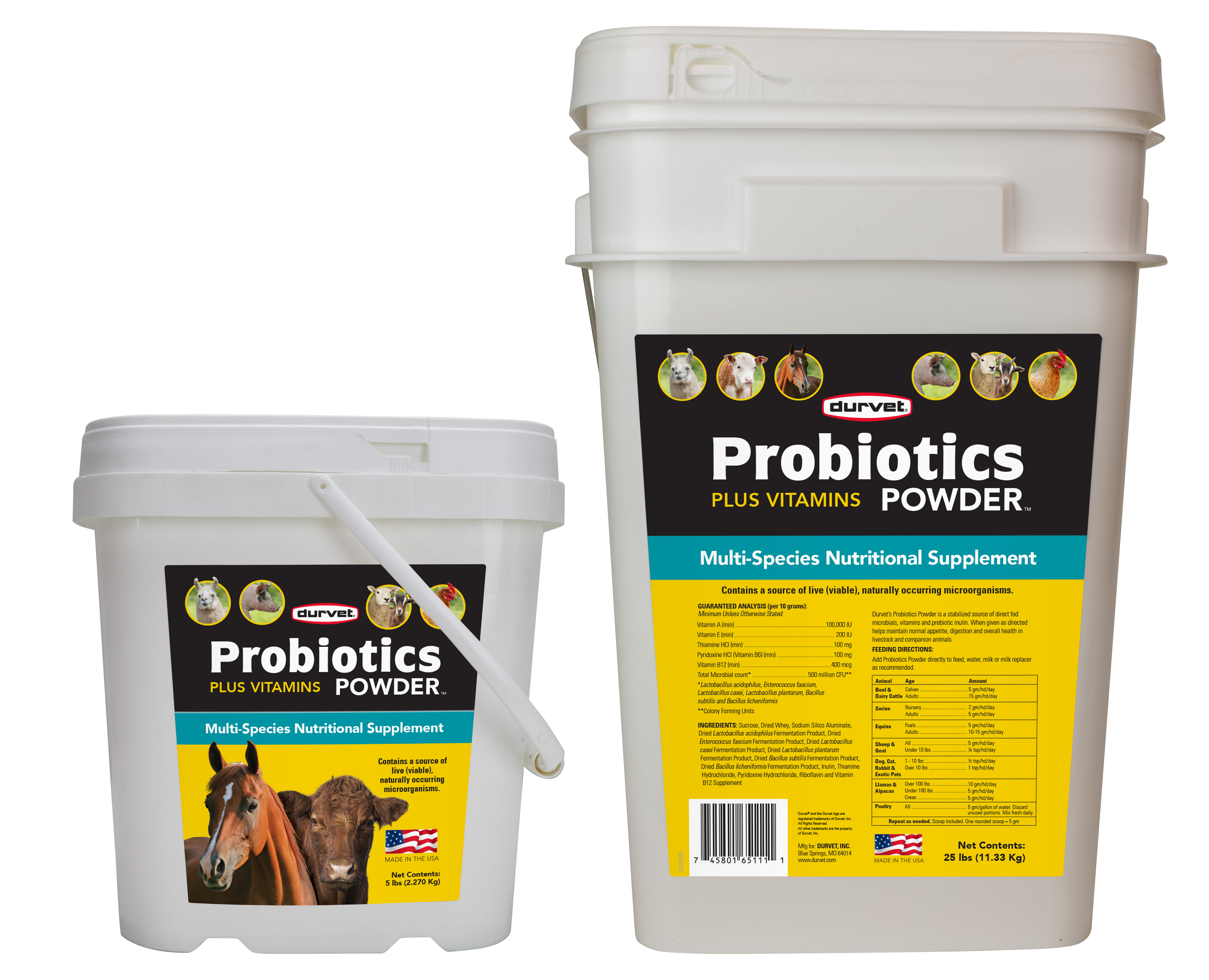 Durvet’s Probiotics Powder is a stabilized source of direct fed microbials, vitamins and prebiotic inulin. When given as directed it helps maintain normal appetite, digestion and overall health in livestock and companion animals.